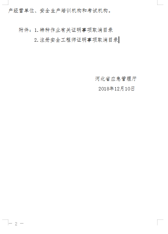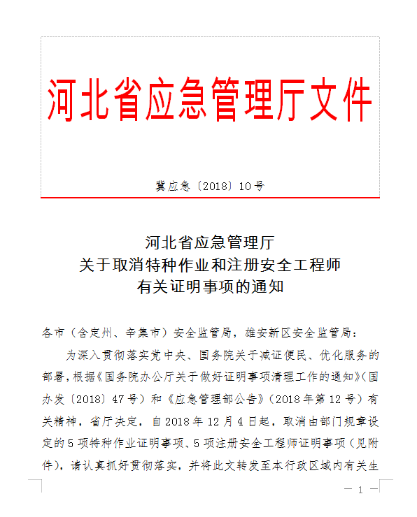 河北省应急管理厅关于取消特种作业和注册安全工程师有关证明事项的通知
